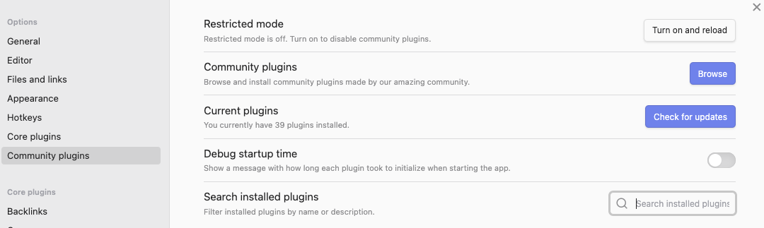 To install the plugin in Obsidian go to Settings > community plugins. Make sure restricted mode is turned off.