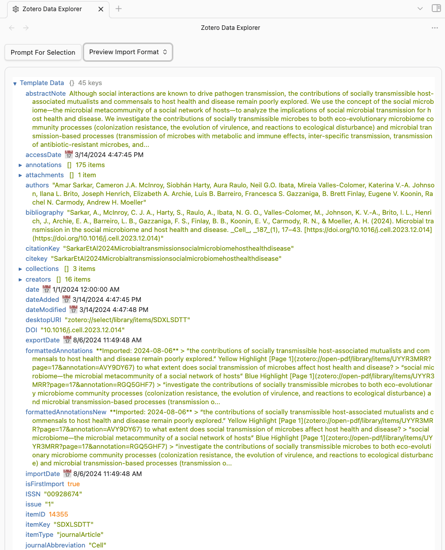 You can see the full set of information you can extract from each reference using Data explorer function in the command palette. Using the data explorer - this reference has over 45 different bits of information: