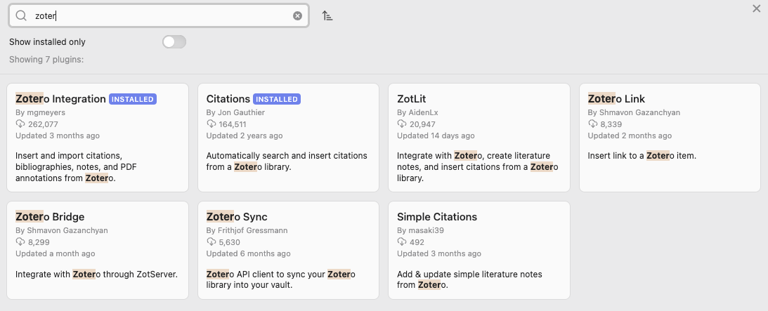 - Obsidian Zotero integration: https://github.com/mgmeyers/obsidian-zotero-integration