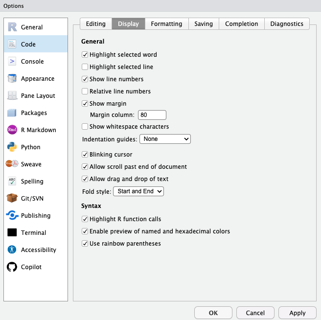 2 Reformating and tidying code in RStudio